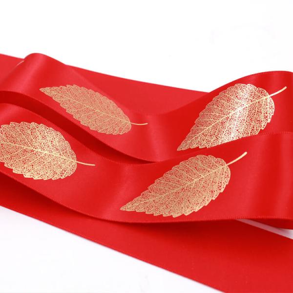 Various Color Silk Satin Ribbon Golden Leaf Printing With OEM Services Images |